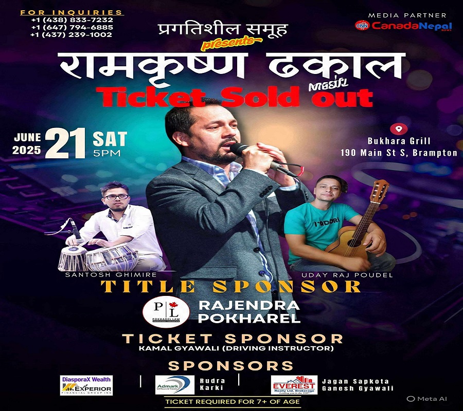 क्यानडाकाे ब्राम्पटन शहरमा ‘रामकृष्ण ढकाल साँझ’ लाईभ म्यूजिक हुँदै