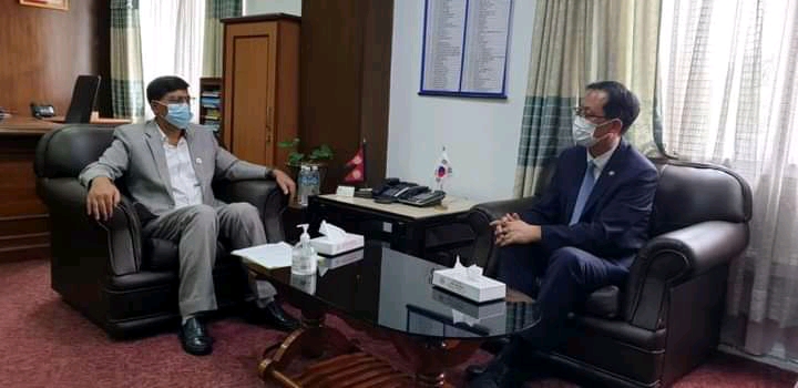 अर्थमन्त्री जनार्दन शर्मासँग कोरियाली राजदूत चोङसुकको शिष्टाचार भेट