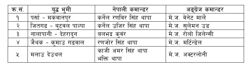 सन्दर्भ श्रोत : १. नेपाली सेनाको इतिहास (२०६९)– त्रिरत्न मानन्धर, तिर्थप्रसाद मिश्र