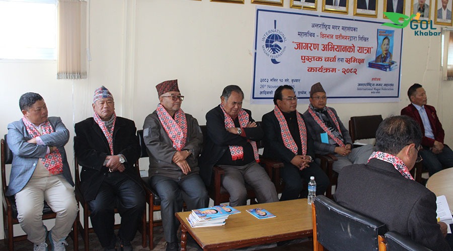 अन्तर्राष्ट्रिय मगर महासंघको आयोजनामा भएको उक्त कार्यक्रमको अध्यक्षता महासंघका अध्यक्ष नविन रोकामगरले गर्नु भएको थियो । उहाँले पनि लेखक घर्तिमगरलाई बधाई तथा शुभकामना दिर्दै आगामी दिनमा अझ शसक्त रुपमा कलम चलाउनु पर्नेमा जोड दिनु भयो ।