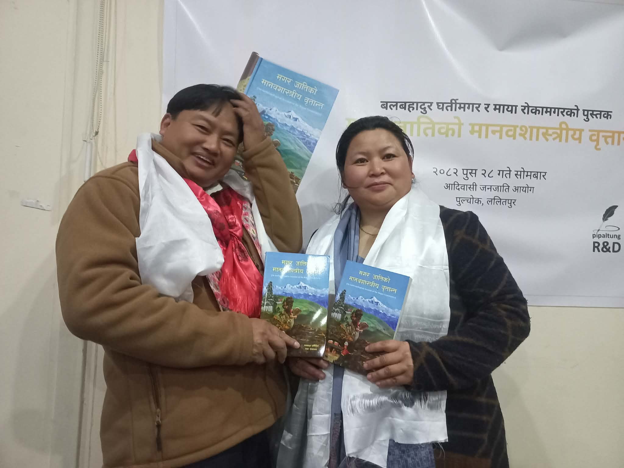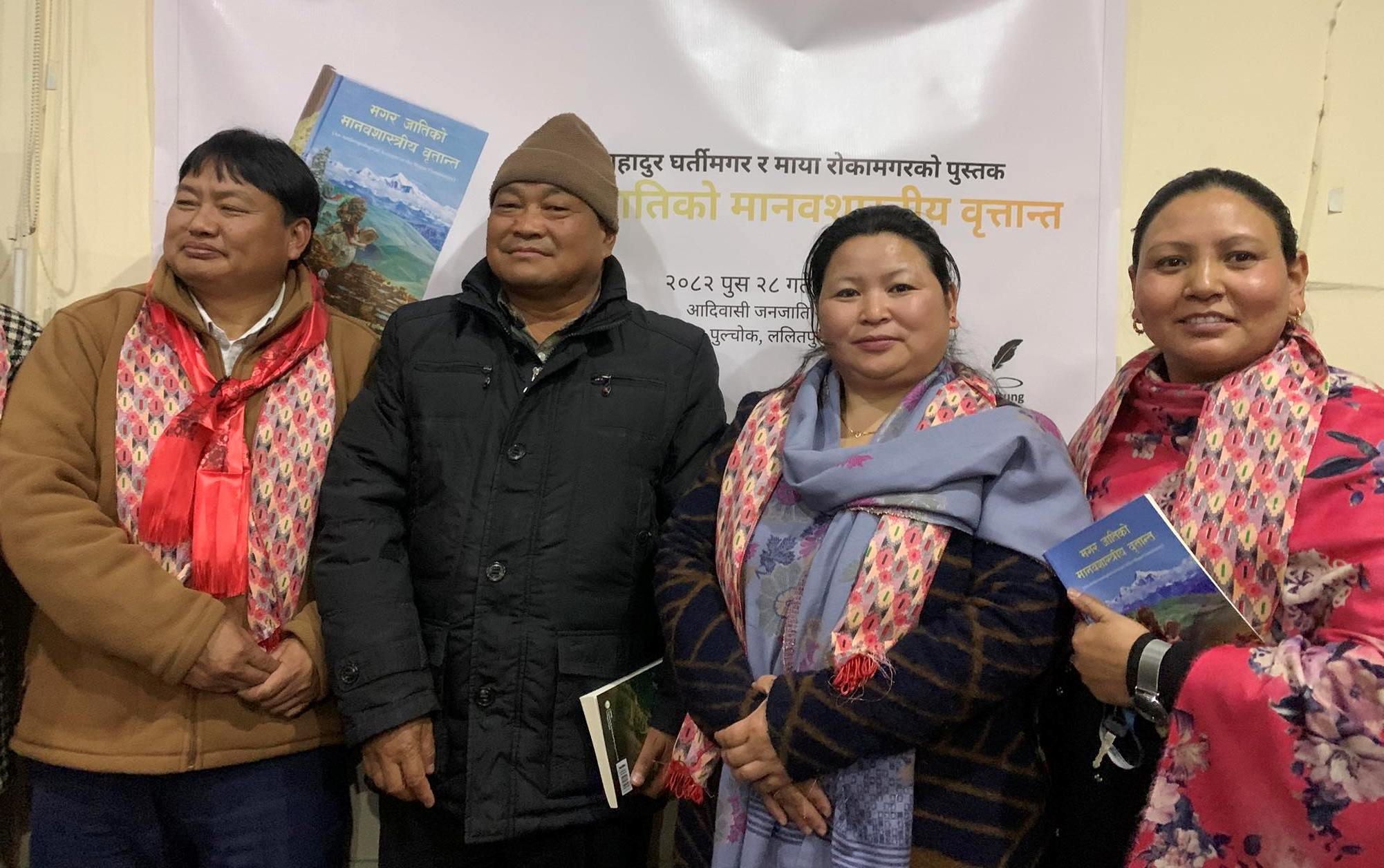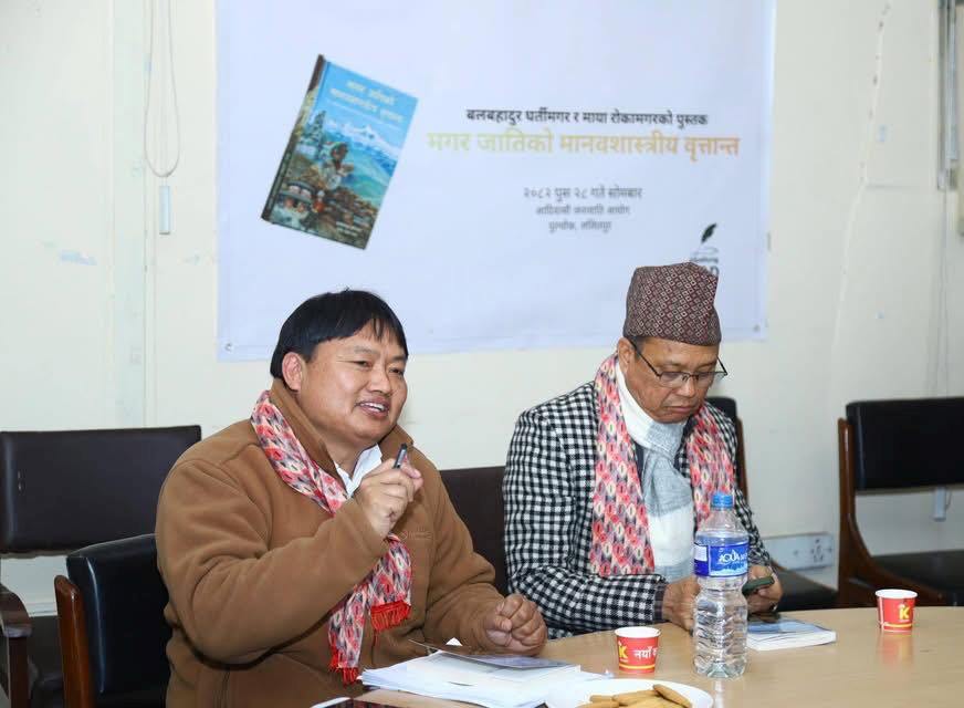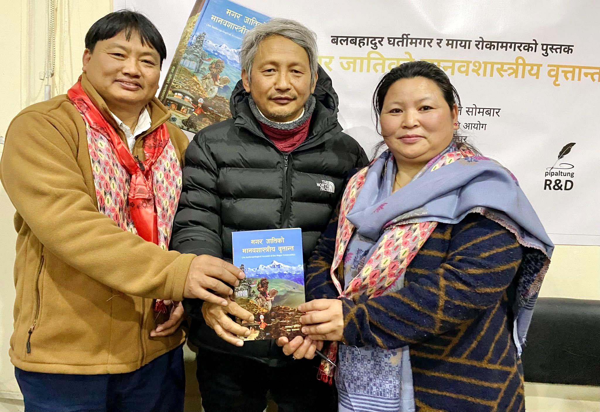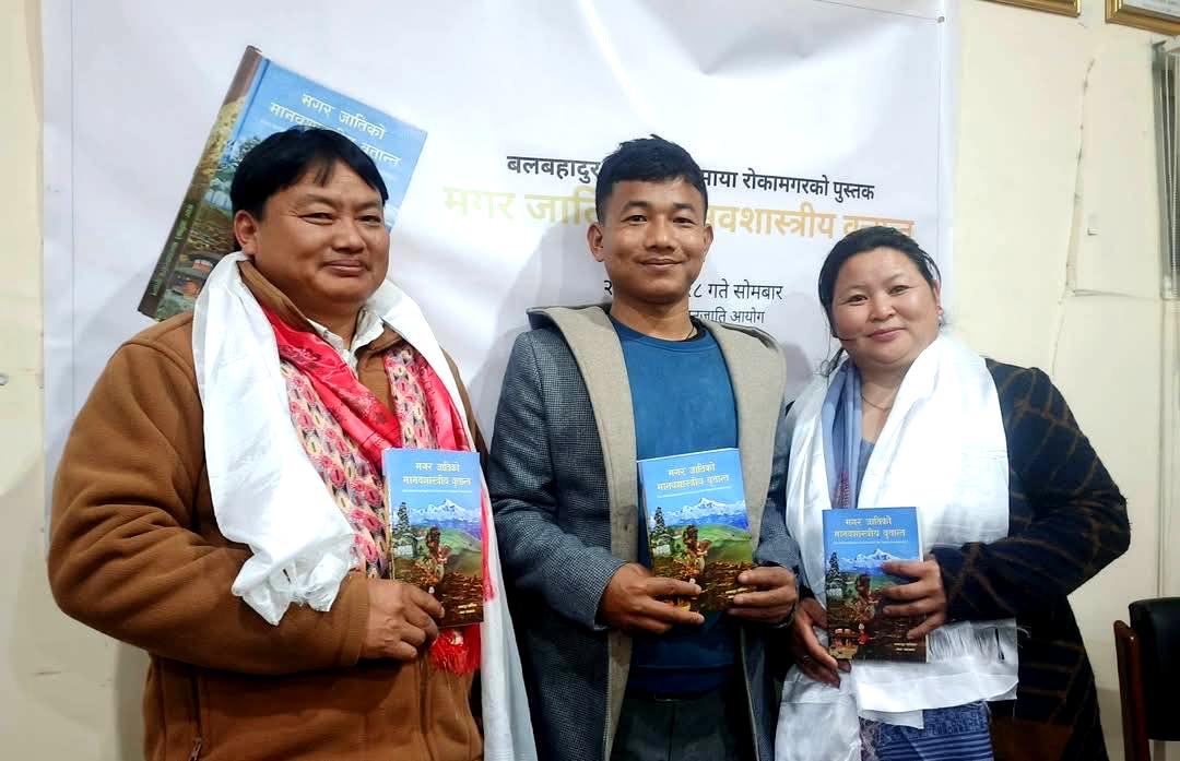 काठमाडौं । नेपाल सरकारका उपसचिव तथा वरिष्ठ समाजशास्त्री बल बहादुर घर्तीमगर र सामाजिक अभियन्ता माया रोका मगरद्वारा लिखित ‘मगरजातिको मानवशास्त्रीय वृत्तान्त’ नामक पुस्तक एक कार्यक्रम समारोह बिच विमोचन भएको छ ।